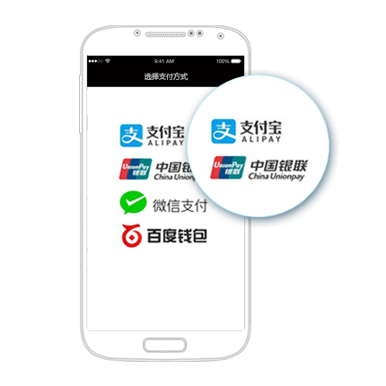 幽默平台,为iOS/Android原生/H5 App提供支付解决方案:支持微信支付、支付宝支付、银联手机支付、百度钱包等。